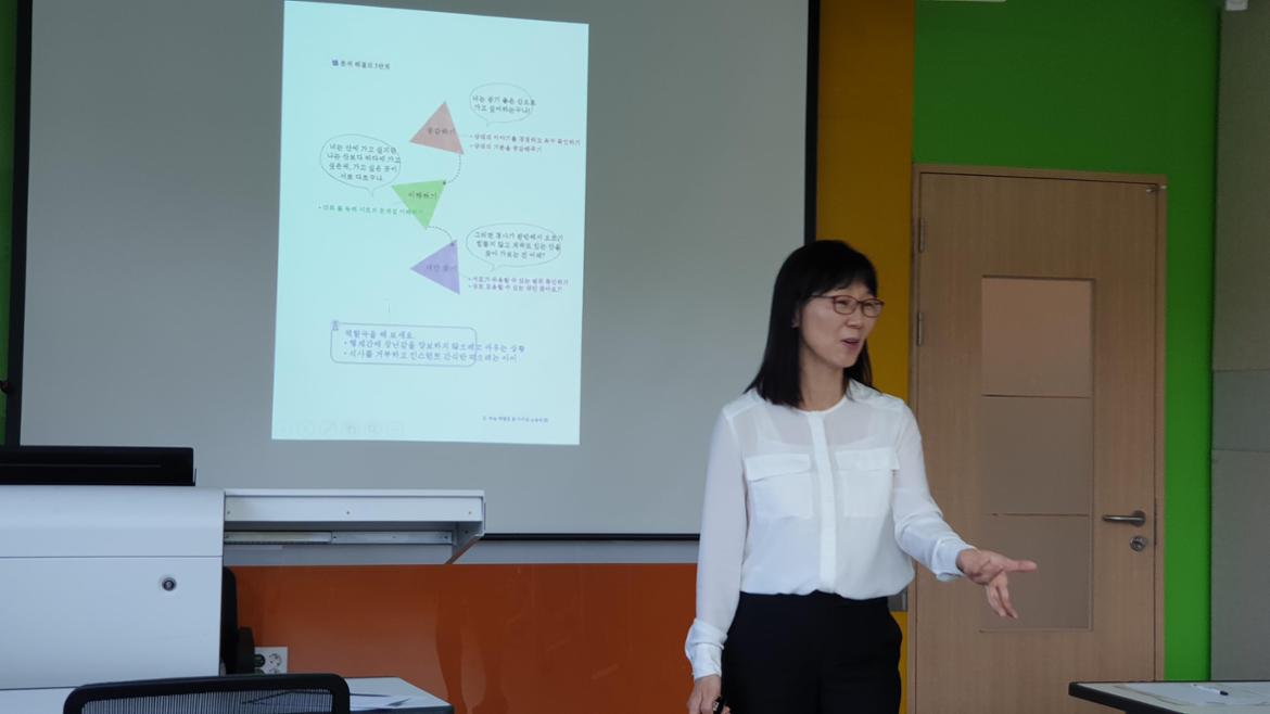 영유아와 소통의 시작은 경청이며, 영유아에게 공감해주고 마지막으로 온몸으로 응답하라는 선생님의 말에 수강생 모두 고개를 끄덕였다. 아이가 위험한 행동이나 남에게 피해를 주는 행동을 할 경우, 야단을 쳐야할지 그냥 놔두어야 할지 고민이 된다는 질문이 있었다. 선생님은 아이의 잘못된 행동에 무작정 야단을 치면 안 된다며 다른 방법을 제시했다. 아이의 잘못된 행동이 무엇인지, 그 행동이 나에게 어떤 영향을 미쳤는지, 그래서 나의 감정이 어땠는지를 천천히 이야기하면, 아이가 상황을 이해하고 이는 행동의 변화로 이어질 수 있다고 했다. 예를 들어 아이가 위험한 물건을 만져서 내가 얼마나 놀랐는지, 그래서 아이가 다쳤다면 내 마음이 많이 아팠을 거라는 메시지를 전달해야 한다는 것이다. 강의를 들으면서, 손주를 돌보지 않는 사람에게도 필요하다고 생각했다. ‘예쁘지~, 씩씩하기도 하네~’ 등의 칭찬은 양성평등사회에서 배제되어야 하지만 아직 인식하지 못하고 있는 시니어들에게도 권유하고 싶었다. 강의가 끝난 후, 한국액티브시니어협회의 신재우 기획이사와 이계선 사무국장과 ‘손주 돌봄 전문가 양성과정’에 대해 이야기 나누었다.