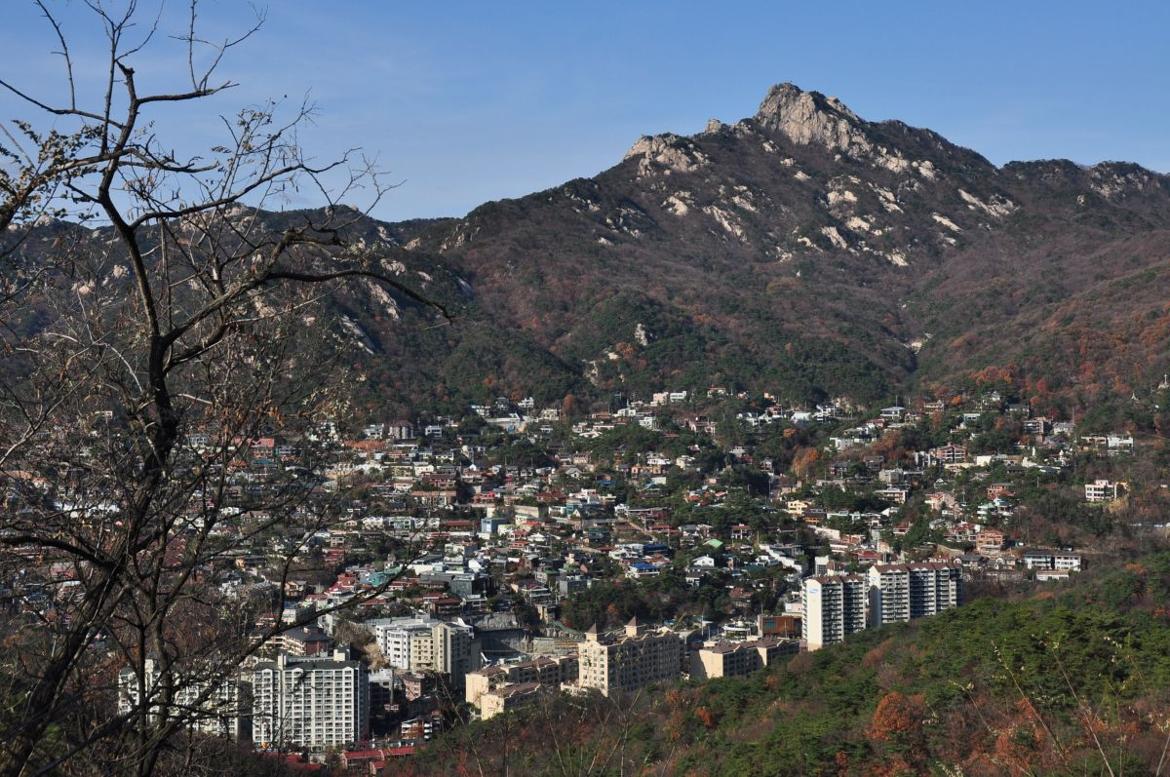 단풍구경을 하기위해 꼭 지방에 있는 산으로 갈 필요는 없다. 도심 속에도 단풍을 즐길 수 있는 곳이 제법 있다. 그 중에 하나가 인왕산과 북악산 하늘길을 따라가는 코스이다. 도심속 깊은 숲길도 체험할 수 있고, 단풍나무가 많아 유독 붉은빛을 많이 발하는 곳이다. 걷는 중간에 빠져나가기도 용이하고 걷고 싶은 만큼 걸을 수 있다. 단, 북악산 하늘길 부암동을 지나쳤다면 무조건 끝까지 가야 한다. 하늘길 중간 팔각정은 쉼터이자 서울 중심을 내려다 볼 수 있는 전망대이다. 얼룩덜룩 물든 북한산 자락에 얹혀있는 평창동 마을을 보는것도 여기서만 느낄 수 있는 풍경이다. 다양한 집 모양새가 만든 한 폭에 그림이다.