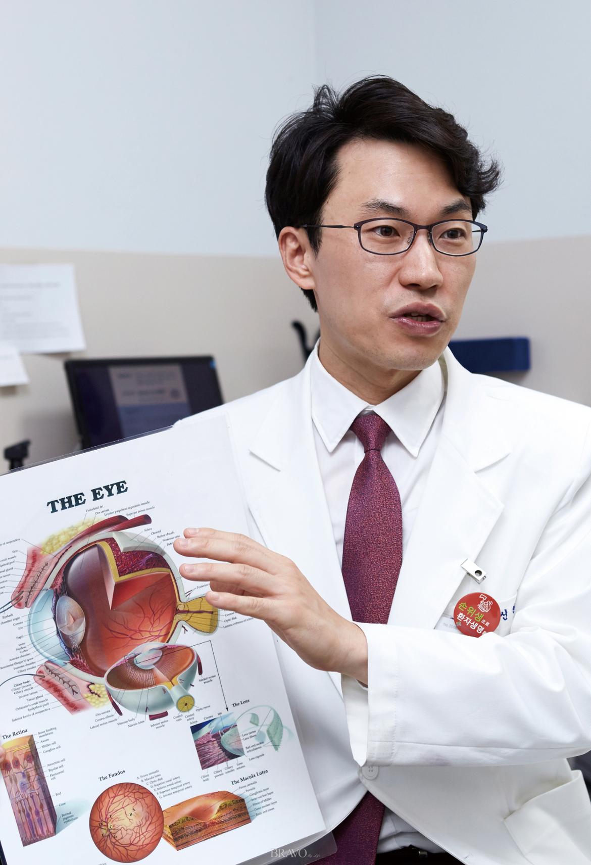 “노령인구가 증가하면서 황반변성 환자도 늘어나고 있어요. 하지만 수명이 증가하면서 눈이 필요한 기간은 더 길어지고 있잖아요. 그러므로 질환이 생기기 전에 주의하는 방법밖에 없어요. 당뇨, 혈압과 같은 만성질환을 관리하고, 야외에서는 자외선을 막는 선글라스를 챙기세요. 고기 위주의 서구화된 식생활을 피하고, 담배는 반드시 끊으셔야 합니다.”