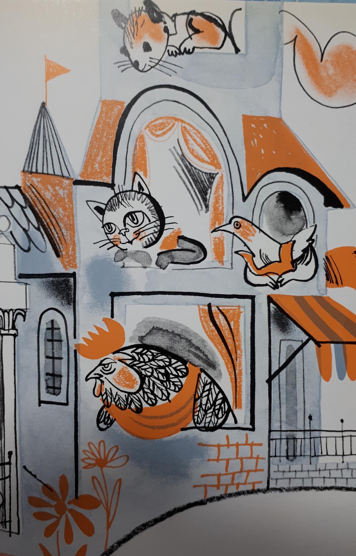 비둘기도 알림판을 보고 찾아와 집안을 살펴보는데, 방도 좁고 부엌도 좁지만, 암탉의 볏이 아름답고 뻐꾸기는 예쁘고 깔끔한 고양이가 맘에 들고, 열심히 호두를 까는 다람쥐의 모습이 좋아서 이웃이 되고 싶다고 한다.