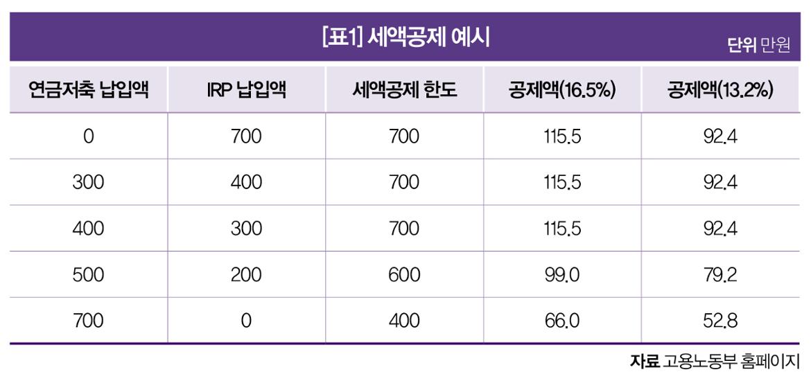 IRP의 두 번째 혜택은 연금저축과 합산해 연간 700만원까지 세액공제를 받을 수 있다는 점이다. IRP에 가입하지 않은 사람이 연금저축에 가입하면 400만원까지만