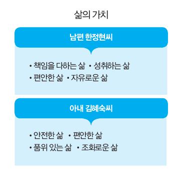 상담을 통해 드러난 한정현·김혜숙씨 삶의 가치는 각각 다음과 같다.
