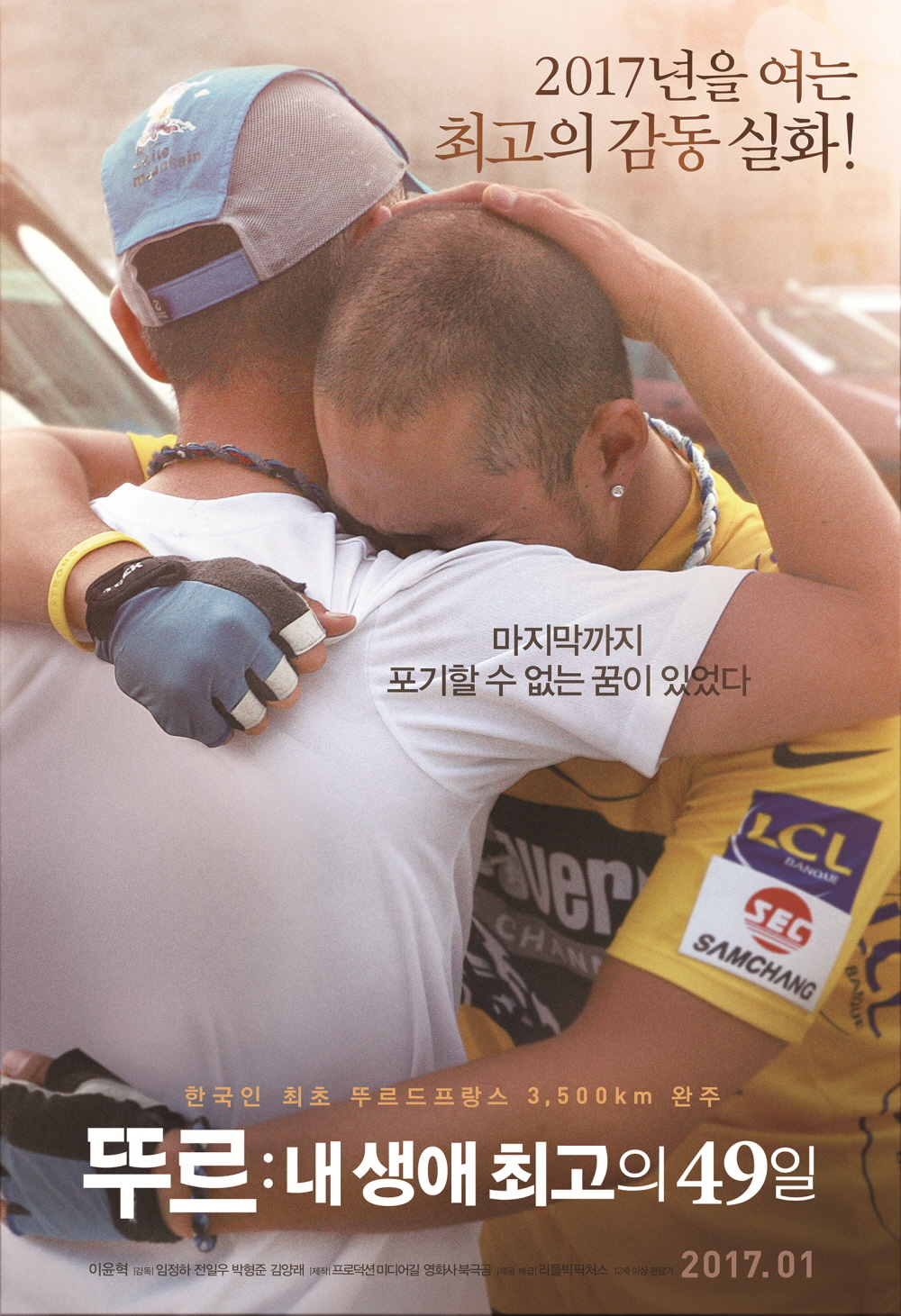희귀암에 걸린 26세 청년이 한국인 최초로 49일 만에 뚜르 드 프랑스 풀코스를 완주한 실화를 영화화했다. 이야기의 주인공은 체육교사를 꿈꾸었을 정도로 건강했으나 어느 날 갑자기 3개월 시한부 인생을 선고받는다. 절망스러운 순간에도 희망을 잃지 않던 그는 뚜르 드 프랑스 완주라는 꿈을 키운다. 3500km 레이스의 마지막 지점인 파리 개선문을 통과하며 꿈을 이룬 순간의 가슴 벅찬 감동이 영화의 포스터에 고스란히 담겨 있다.