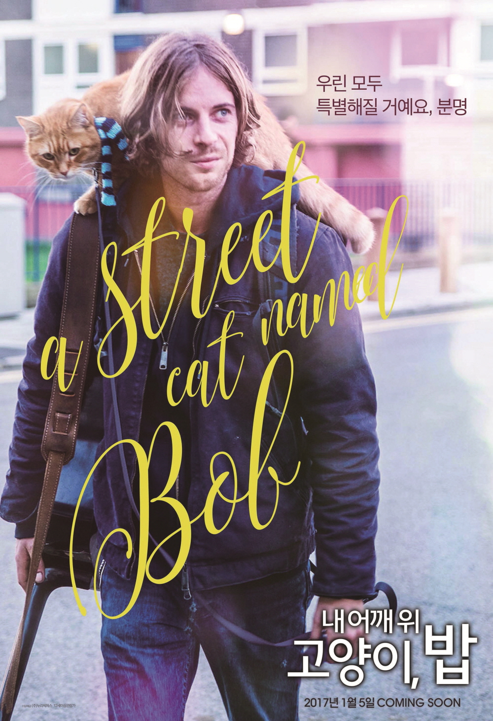 제목처럼 주인공 제임스는 어깨에 고양이 밥을 올리고 거리 이곳저곳에서 기타를 치고 사람들과 정을 나누며 따뜻한 세상과 마주하게 된다.