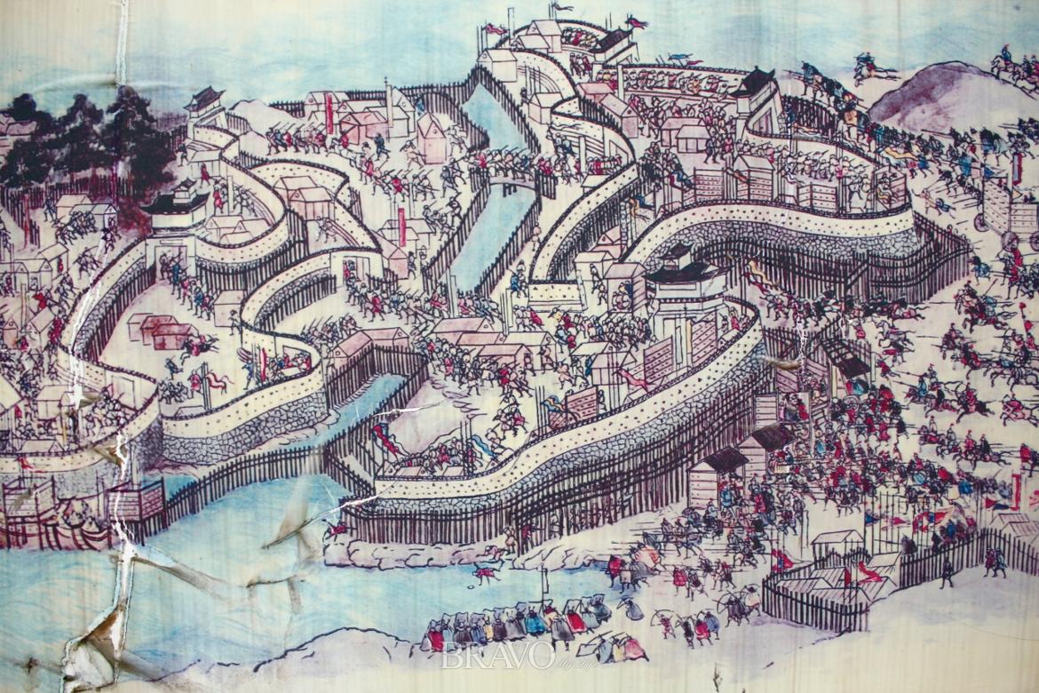 성의 규모는 실로 엄청나다. 1만4000명의 병력을 너끈히 품었음직하다. 높이 40m쯤 돼 보이는 혼마루를 중심으로 수많은 건물이 세 겹으로 배치됐다. 성 한가운데 물길을 내고 두 개의 다리가 놓였는데, 밤이면 다리가 걷혀 내성과 외성이 물길로 갈리었다. 그래서 왜교성이라는 이름이 붙었고, 밤에 다리를 끌어당겨 물길을 텄다고 해서 예교성(曳橋城)이라고도 불렸다.