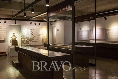 도시 숲을 헤치고 빠른 속도로 버스가 달린다. 희미하게 햇살이 보였다 안보였다 한다. 짙은 갈색 나무 끝이 파란 하늘 배경으로 흔들흔들, 구름의 속도로 움직인다. 작은 버스정류장에 내려 차갑고 신선한 공기와 마주하며 이정표를 따라 걷는다. 곧 다다른 곳은 김수영 문학관. 문체의 자유를 넘어 진정한 자유세계를 위해 끊임없이 저항하고 아파했던 순수시인 김수영의 세계가 구름이 가는 속도만큼 잔잔히 흐른다.
