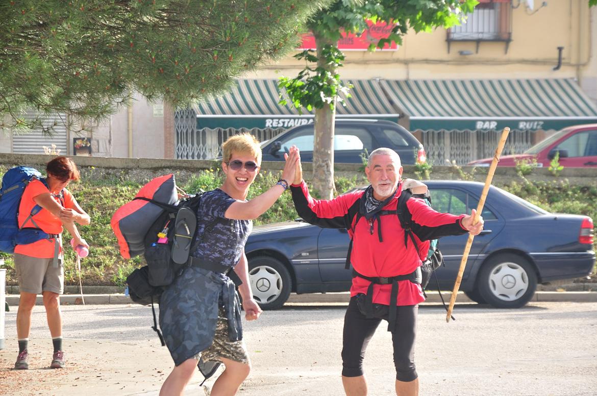 첫 번째, 길에서 만난 사람들끼리 미소가 담긴 인사를 나눕니다.