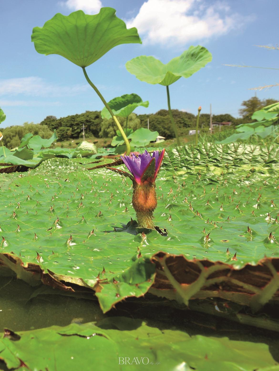 여름이면 만나곤 하는 성난 물의 모습은 여름이 곧 불과 물이 정면으로 맞서는 계절임을 일깨워줍니다. 그런 7~8월 불과 물이 상극(相剋)하는 틈새에서 피는 각별한 꽃이 있습니다. 태양의 열기를 온몸으로 받아 식히려는 듯 그늘 한 점 없는 연못, 흐르지 않는 저수지에 커다란 이파리를 잔뜩 깔고 보랏빛 영롱한 꽃을 피우는 물풀이 있습니다. 바로 100년 만에 꽃을 피운다는 가시 연꽃입니다.