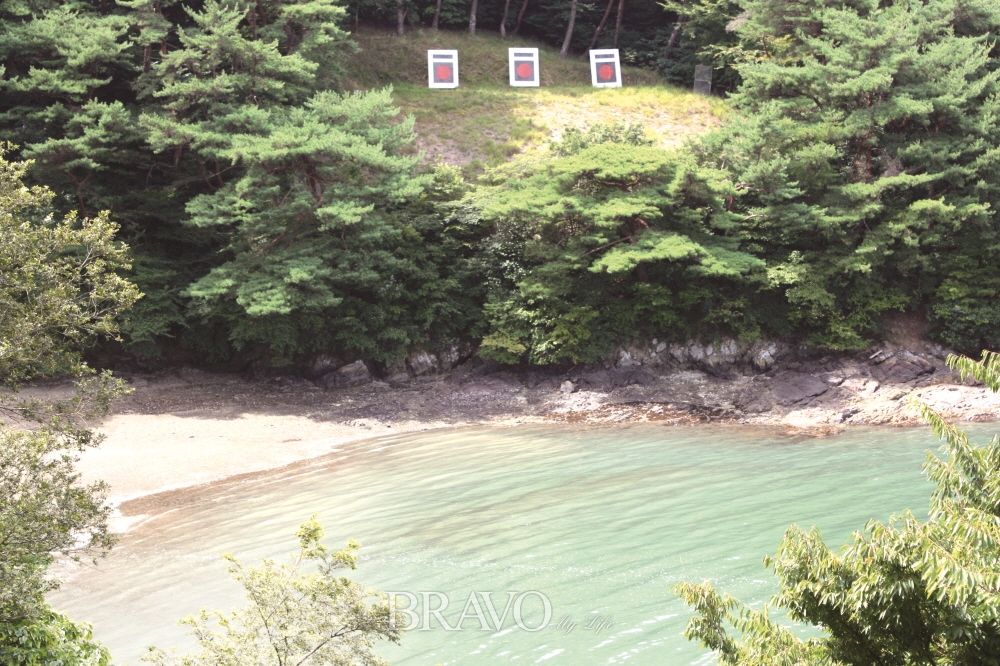 통제영 시설 가운데 또 하나 눈길을 끄는 곳이 활터 한산정(閑山亭)이다. 바다를 끼고 145m 건너편 산비탈에 과녁 셋이 있다. 밀물과 썰물 교차를 이용해 해전에 필요한 실전거리 적응을 위해 일부러 바다 낀 곳을 골랐다는데, 아마도 국내에 이런 활터는 없으리라 했다. 매일같이 활쏘기를 연마하던 이곳에서 “수하들과 내기를 해 진 편에서 떡과 술을 내 배불리 먹었다”는 <난중일기> 기록이 자주 보인다. 1594년의 과거시험 활쏘기 시험장으로도 이용된 역사의 현장이다.