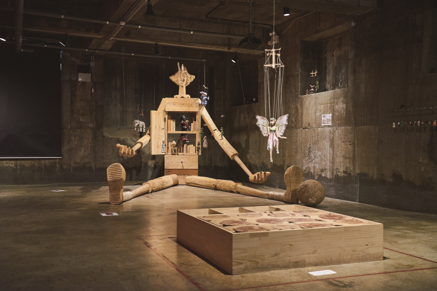 하슬라아트월드는 정해진 방식은 아니지만 현대미술관, 피노키오 박물관, 마리오네트 미술관 순으로 관람한다. 현대미술관은 호텔 건물 로비에서부터 미로처럼 연결돼 있다. 지상에서 지하로, 다시 지상으로 오르내리며 작품 감상을 하는 구조다. 동해의 파란빛과 자연광, 목조 마루, 겉치레 없는 시멘트벽을 배경으로 작품들이 자연스럽게 건물 곳곳에 녹아들어 있다. 마치 어딘가 ‘툭’ 하고 놓아둔 느낌에 시선이 간다. 감각적이고 기발함이 돋보이는 회화와 조각 작품 200여 점도 전시되고 있다.