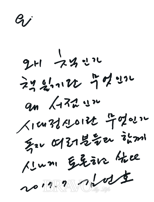 “중장년의 젊은 시절, 1980년대는 책의 시대였어요. 모든 젊은이가 책을 들고 다녔죠. 크고 두꺼운 책도 마다하지 않았어요. 책을 읽으면서 우리는 어떻게 살아야 할 것인가, 어떤 방법으로 민주적인 사회를 만들 것인가 등을 고민하고 토론했죠. 그 당시 책의 정신은 위대했고, 그게 한국 민주주의의 토대가 됐다고 생각해요. 그런데 요즘은 패스트푸드 같은 스마트폰에 빠져 쓸데없는 정보에 생각을 뺏기죠. 사람이 지식만 가지고는 안 돼요. 책을 통해 깊은 지혜를 얻어야 지혜로운 사회가 되고, 창조적인 발상이 가능해지죠.”