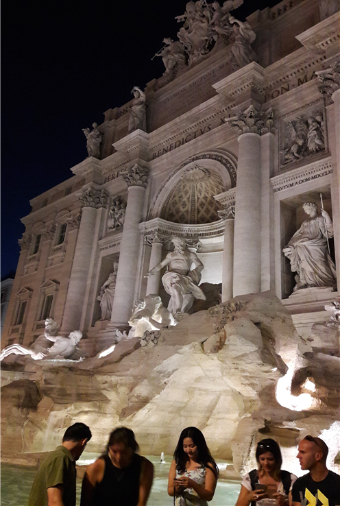 트레비 분수 주변엔 많은 관광객들이 둘러앉아 사진을 찍고 있다.