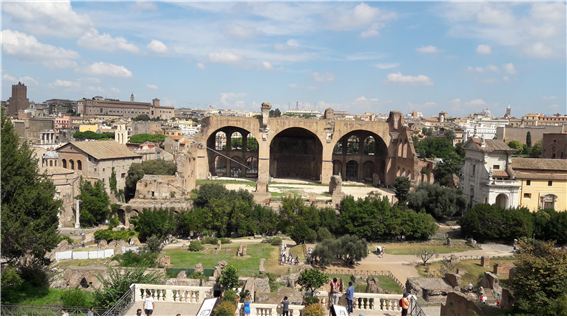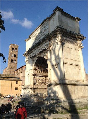 콜로세오에서 성스러운 길이라는 ‘Via Sacra’ 거리를 따라가면 포로 로마노로 간다. 고대 로마의 고급 주택가였던 팔라티노 언덕과 포로 로마노로 가는 갈림길에 잘 보존되어 있는 티투스 개선문이 있다. 포로 로마노는 고대 로마 시대의 민주 정치와 상업, 법률의 중심지였다. 포로 로마노는 여러 황제를 거쳐 오면서 발전했고 그 후 여러 시대를 거쳐 온 다양한 시대의 흔적들을 만날 수 있는 곳이다. 얼핏 보면 폐허와 같은 모습이지만 지금까지도 발굴 작업과 복원 작업이 계속되고 있고, 예전의 번성했던 로마의 모습을 엿볼 수 있는 장소로 꼽힌다.