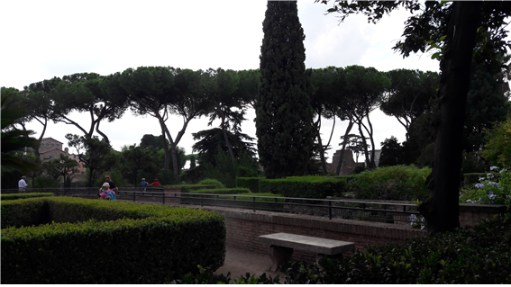 줄지어 서있는 소나무가 회랑의 지붕처럼 이어진다: 로마 군대에게 그늘을 제공하려고 가지를 쳐서 위로 우산처럼 만들었다 한다.