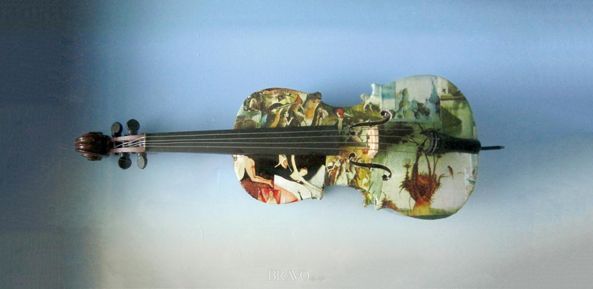 그해 한만영 작가는 바이올린과 첼로를 핵심 오브제로 삼은 작품 10점을 내놓았는데, 나는 주저 없이 이 첼로 오브제의 작품을 선택했다. 첼로를 완벽한 비례로 축소한 오브제에는 중세 서양화가들의 작품에서 볼 수 있는 여러 이미지가 그려져 있다. 이 작품 속 첼로를 꺼내어 연주하면 그림의 주인공들이 튀어나올 것만 같다.