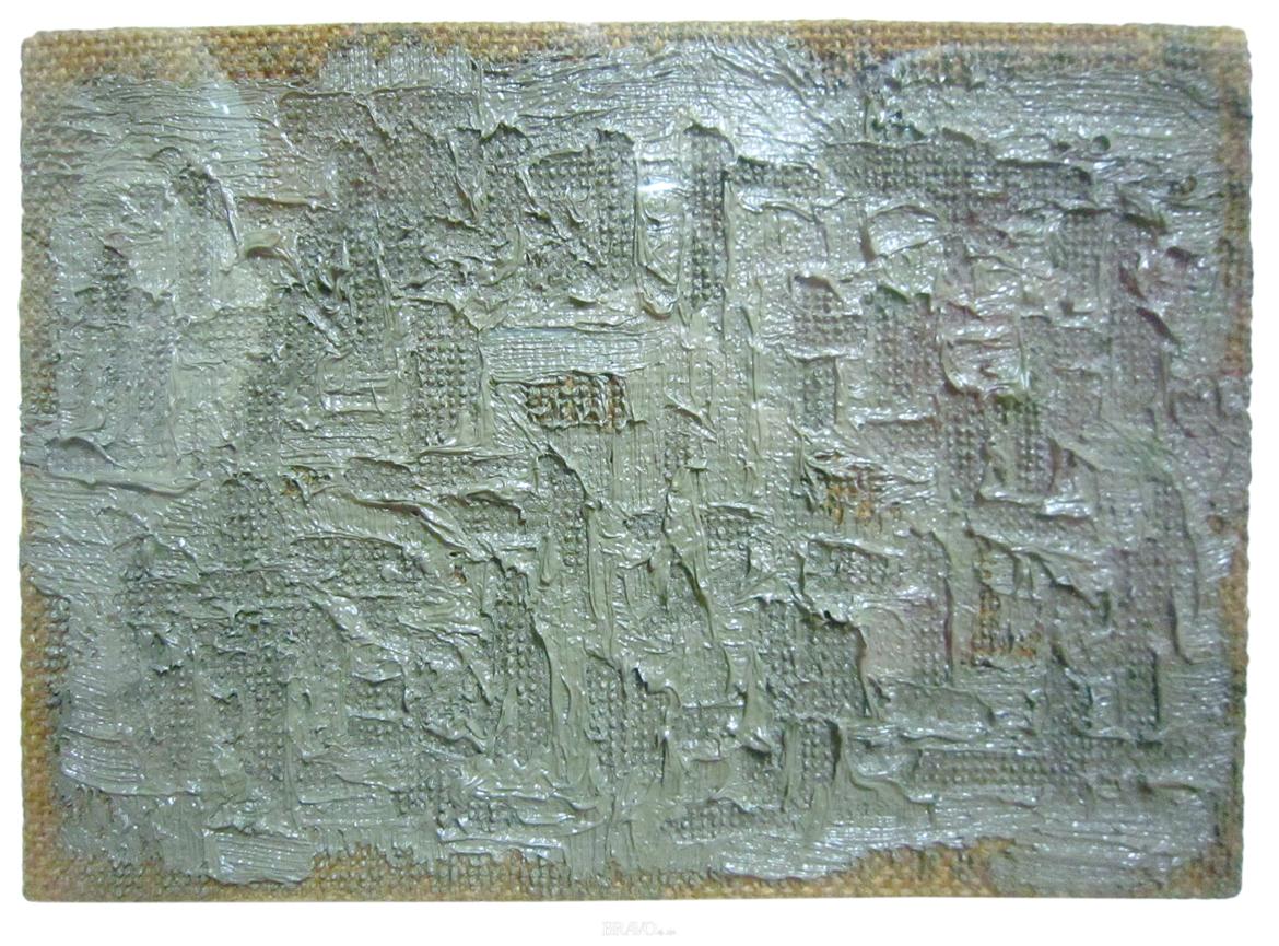 ▲하종현 <접합> 마대에 유채 36cm×25cm 1996년(이재준)