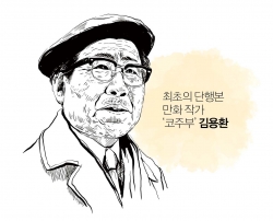 코가 뭉뚝하고 키는 작달막하지만 다부진 모습의 ‘코주부’는 김용환 작가의 대표 캐릭터다. 때론 모자를 쓰고 점잖은 어른으로 나와 신문에서 당대의 사회문제를 다루는 시사만화 주인공으로 등장하기도 했다. ‘코주부’가 알려진 것은 한국전쟁이 아직 끝나지 않은 1952년, <학원> 잡지에 연재된 <코주부 삼국지>를 통해서였다. 청소년 교양지였던 <학원>은 10만 부 가깝게 판매되었다는 증언이 있을 정도로 인기 잡지였다. 책이 부족했던 시절, 읽을거리가 풍부했던 <학원>이 세간의 주목을 받은 것은 당연했다. 그곳에 빼어난 이야깃거리인 <삼국지>를 그림으로 만날 수 있었으니 당시 청소년들에게 얼마나 인기가 있었는지 짐작할 만하다. <학원>에 연재된 ‘코주부 삼국지’는 1955년 만화책 <코주부 삼국지>로 발행되면서 지속적인 인기를 누렸다.