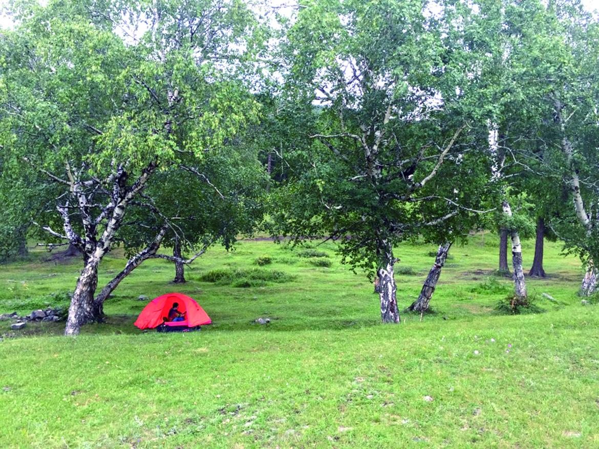 내친김에 더 추워지기 전 풍성한 몽골의 숲에 들어 가자고 했다. 거기서 하늘과 땅, 그리고 그 사이를 채우고 있는 빛과 공기에 흠뻑 젖고 싶었다. 개울 옆 에 자리를 깔고 텐트도 쳤다. 그래봐야 집에서 15분 거리도 안 되는 마을 뒷산이다. 청명한 공기 속에 새 소리와 개울 물소리가 구별 없이 어울리며 섞인다.