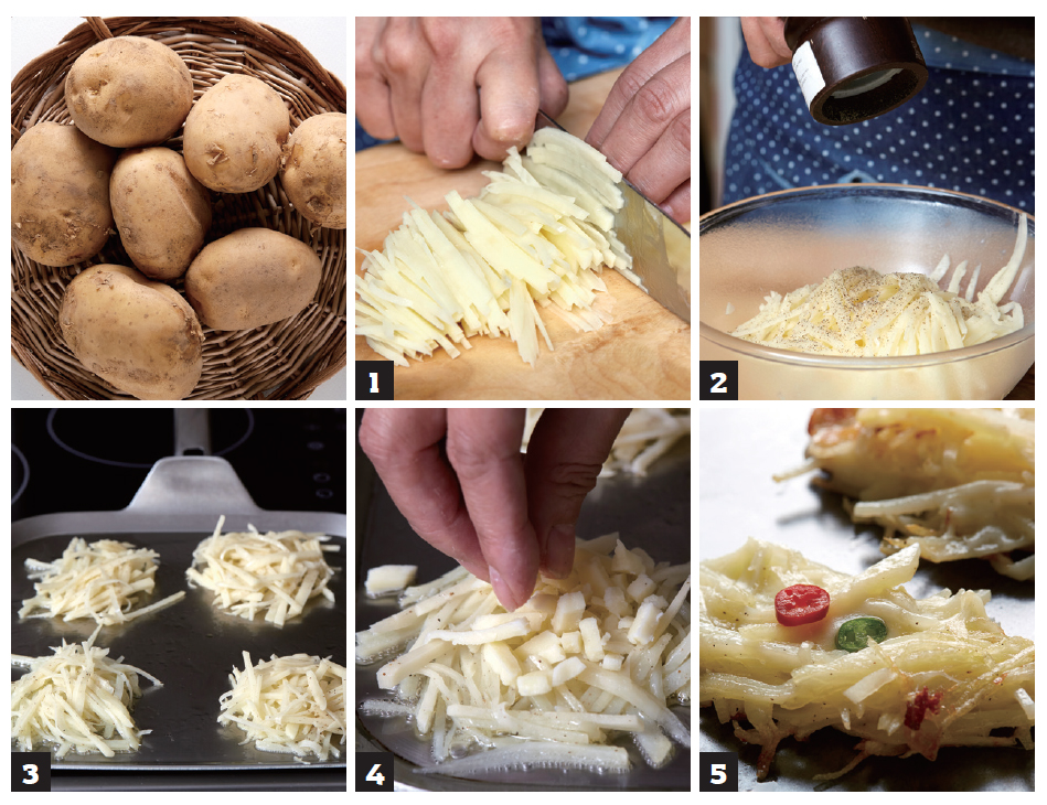 전, 탕, 볶음 등 다양한 요리에 사용되는 감자는 치즈와도 잘 어울린다. 특히 우유로 만들어진 치즈는 감자에는 없는 비타민 A, 단백질 등이 풍부하다. 색다른 감자전으로 겉은 바삭, 속은 쫀득한 치즈로 가득 찬 감자채 치즈전에 도전해보자.