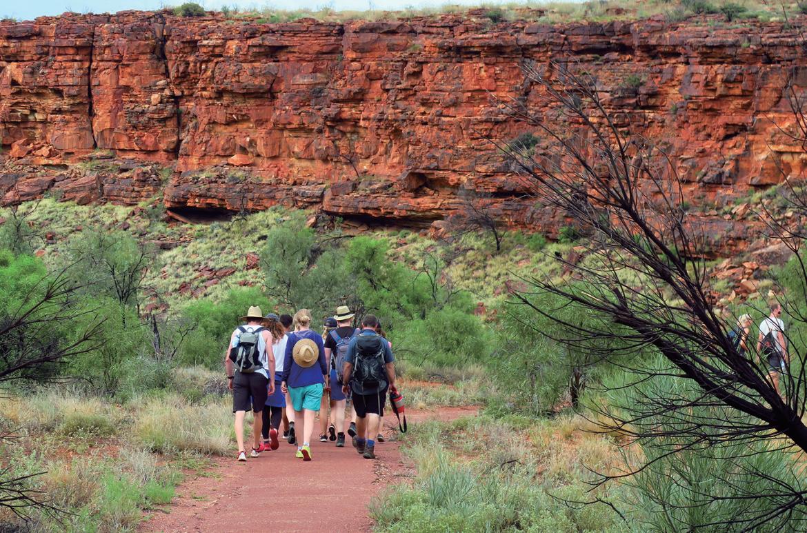 2박 3일의 더락투어 일정에는 울루루 탐험 외에도 카타추타 국립공원과 킹스캐니언 탐험이 포함된다. 첫째 날엔 울루루, 둘째 날엔 울루루-카타추타 국립공원, 돌아오는 길엔 킹스캐니언 탐험이 일반적인 코스다. 울루루와 함께 주요 성지로 유네스코세계자연유산에 등재된 카타추타(1069m)의 이름에는 ‘머리가 많다’는 뜻이 담겨 있다. 카타추타는 다채로운 36개의 바위가 모여 바위산을 이루고 있는데, 혹자는 단순한 울루루 탐험보다 바위와 바위 사이를 가로질러 바람의 계곡을 트레킹하는 코스를 선호하기도 한다. 킹스캐니언 트레킹은 웅장한 협곡을 내려다볼 수 있는 장거리 코스와 협곡을 따라 산책하는 단거리 코스로 나뉘는데, 필자가 갔을 때는 비가 많이 내려 길이 유실되는 바람에 캠핑카에서 짐을 다 내리고 홍수가 난 강을 걸어서 건너가는 진풍경이 벌어졌다.