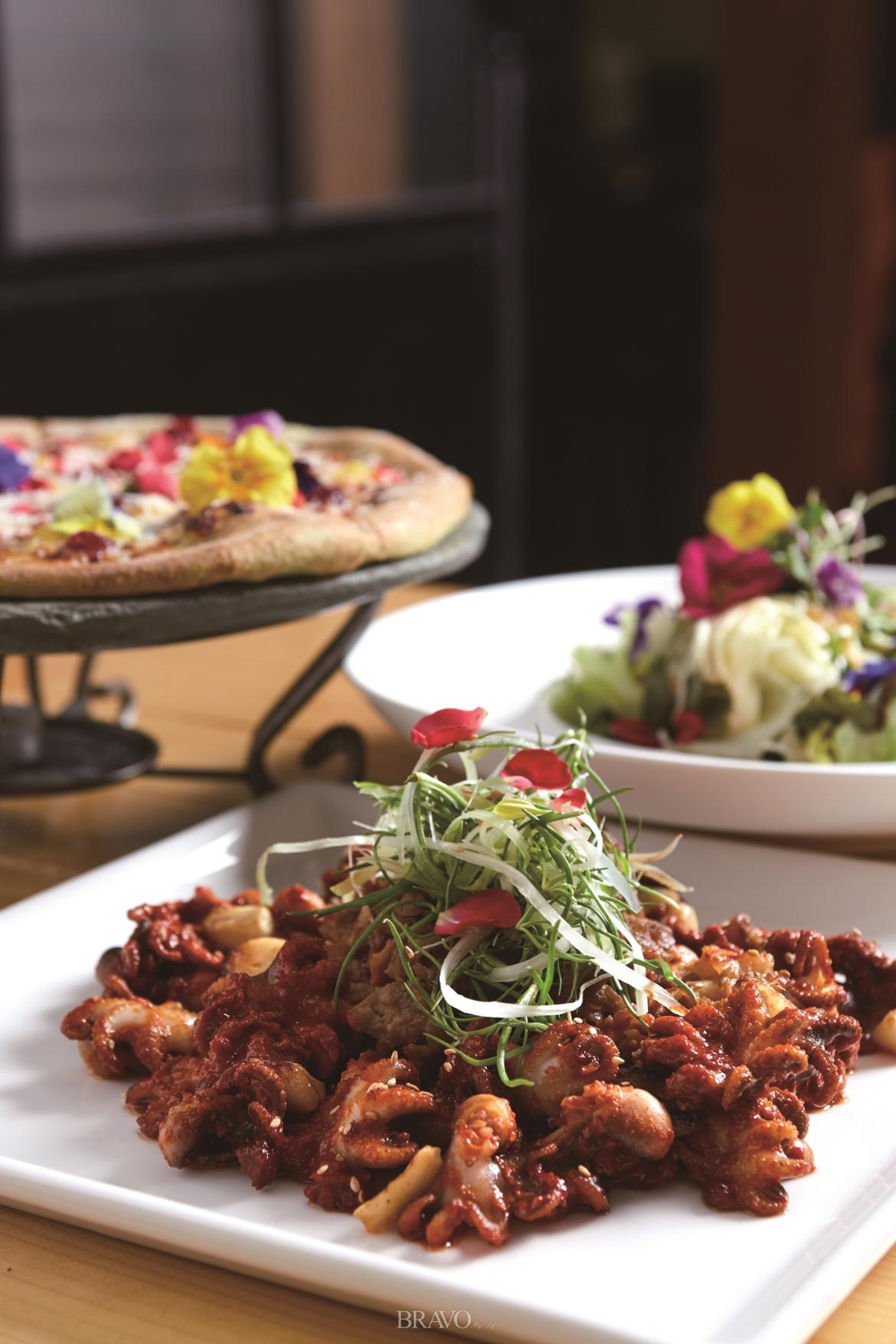 한식과 양식의 독특한 만남은 총괄 셰프인 조우현 대표가 있었기에 가능했다. 대한민국요리 대표팀 ‘수라’의 팀장이자 감독을 맡았던 그는 2009 아시아 컬리너리컵 대상, 2014 룩셈부르크요리월드컵 은상·동상을 수상하는 등 각종 세계요리대회에서 실력을 인정받았다. 조 대표는 “아무리 톱 셰프일지라도 고객이 만족하는 음식을 만들 수 없다면 최고라 할 수 없다”는 철칙으로 고객의 입맛을 사로잡고자 했다. 그렇게 다양한 시도를 통해 탄생한 것이 지금의 메뉴들이다. “주꾸미 집에서 파는 피자가 맛이 좋겠어?”라고 시큰둥하다가도 막상 먹어보면 여느 피자 전문점 못지않은 맛에 감탄하게 된다. 오히려 그보다 더 낫다는 생각이 들지도 모르겠다. 피자 반죽만 해도, 취나물을 갈아 넣어 숙성한 도우를 사용한다. 일반 밀가루 도우보다 영양분은 물론, 더 쫄깃하고 담백한 식감을 내는 것이 특징이다.