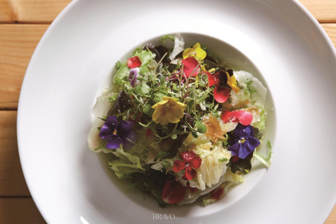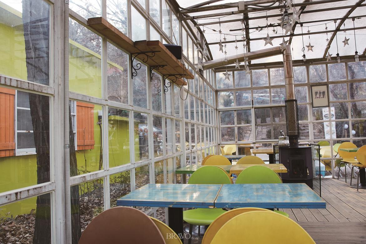 이곳 메뉴를 더욱 특별하게 만드는 재료가 있다. 바로 ‘식용 꽃’이다. 팬지, 카네이션, 패랭이, 국화, 장미 등 알록달록 꽃들이 피자와 샐러드 등에 올라간다. 크게 맛을 좌우하는 재료는 아니지만, 시각적으로도 예쁘고 기분도 산뜻해지는 요소가 된다. 단골들이 가장 선호하는 구성은 불주꾸미와 꽃 피자를 한꺼번에 맛볼 수 있는 세트 메뉴다. 외식을 하면서 이 세 메뉴를 한 상에서 만나볼 일은 극히 드물 것이다. 생소한 조합이지만 예상외로 궁합이 잘 맞는다. 매콤하고 쫄깃한 주꾸미볶음을 먹고 얼얼해진 입안을 폭신하고 고소한 피자가 달래준다. 반대로 치즈가 들어간 피자를 먹다가 느끼하다 싶을 때 칼칼한 주꾸미를 먹으면 입안이 개운해진다. 특별한 경험의 연속인 이곳에서는 물 한 잔도 평범하지 않다. 생수나 보리차 등 일반 식당에서 내오는 식수가 아닌, 로즈메리 허브차를 제공한다. 찻주전자를 고체 연료 위에 올려 식사를 하는 동안에도 차가 따끈하게 유지된다. 티타임을 더 즐기고 싶다면 야외 정원 카페를 이용해보자. 투명한 벽면으로 된 카페에서는 아름다운 봄 풍경이 그대로 한눈에 담긴다.