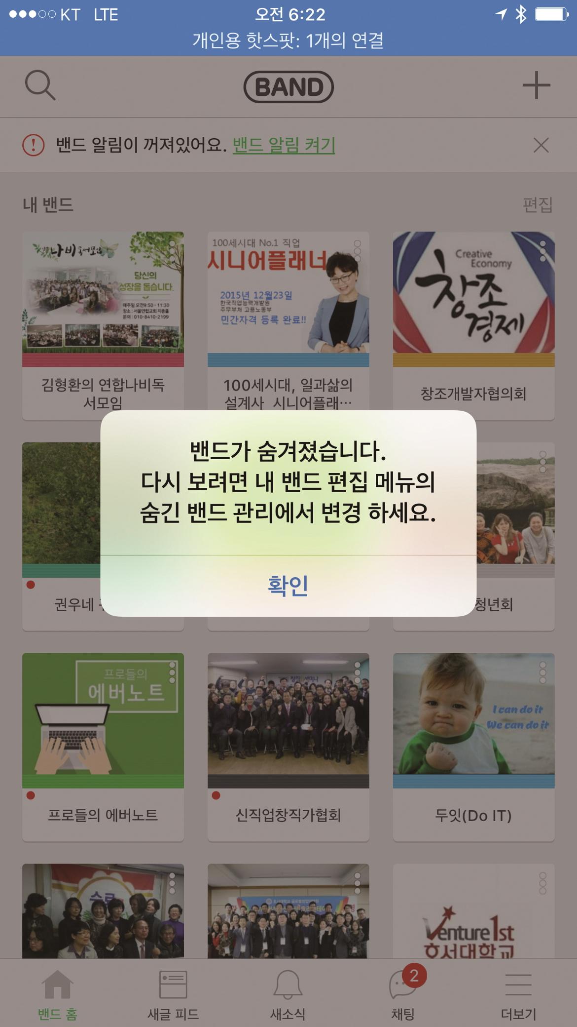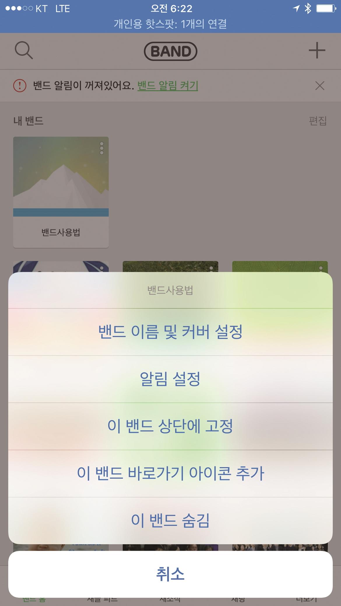 • 다시 보려면 내 밴드 편집 메뉴의 ‘숨김 밴드 관리’ 에서 변경 가능하다.