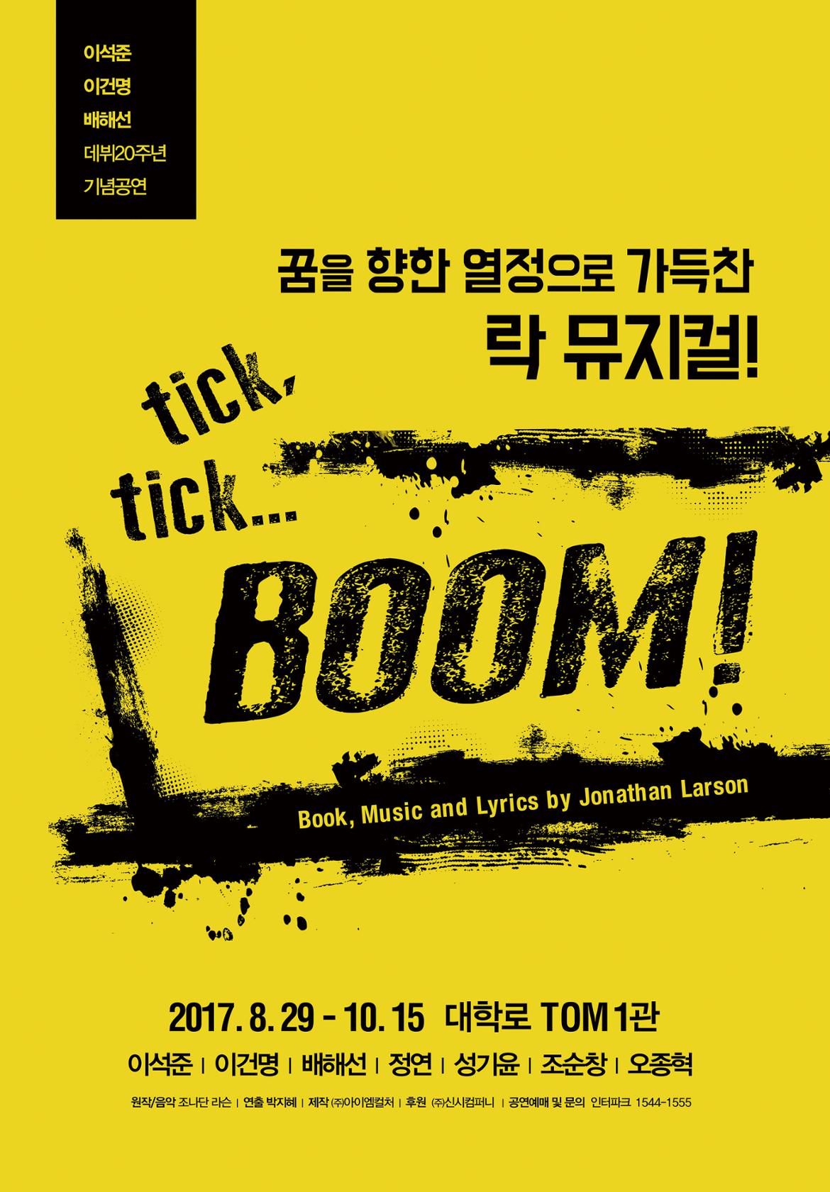 배우 이석준, 이건명, 배해선의 데뷔 20주년 기념 공연이다. 성기윤을 비롯해 <틱틱붐>의 원년 멤버들이 뭉쳤다. <렌트>의 극작가 조나단 라슨의 유작으로 작품을 향한 예술혼을 불태운 작가의 자전적 이야기를 담고 있다.