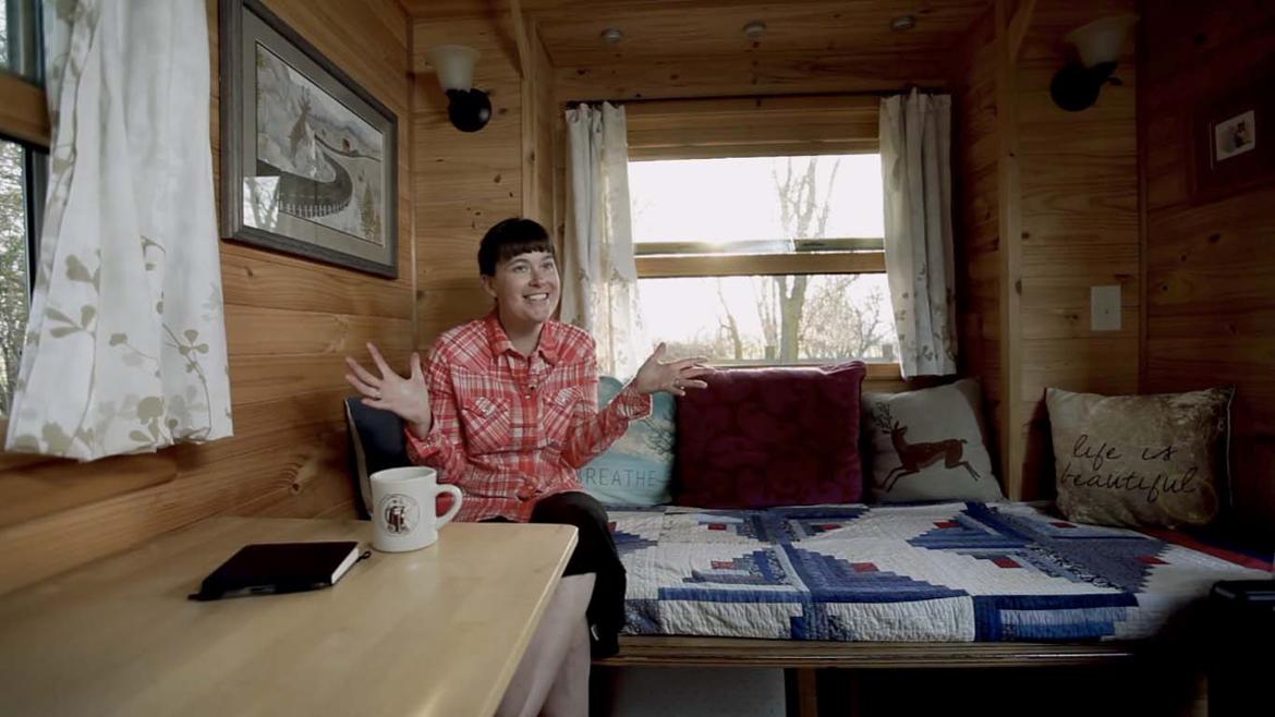 가장 필요한 것만 두고 작은 집에 사는 사람.  [이미지출처 Imdb]