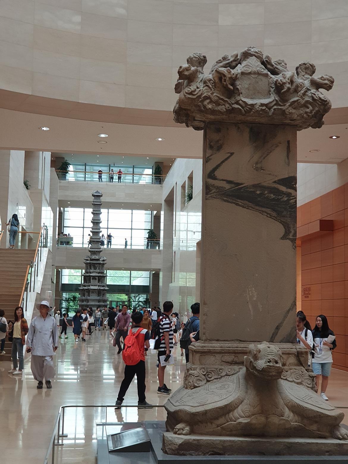 국립중앙박물관 안으로 들어와 보니 전시실로 가는 곳곳마다 볼거리가 꽤 있었습니다. 행사장 중심에 위치한 비석과 석탑 주변에는 현장학습을 나온 초등학생들이 노트에 메모를 해가면서 보물을 관찰하고 있었습니다. 경춘사 10층 석탑은 층층의 높이를 세며 11층이라는둥 9층이라는둥 의견이 분분하다 합니다. 우리는 안내문에 "10층이라고 적혀 있으니 10층이 맞겠지!!"맞장구를 치며, 목적지인 오백나한전을 향해 걸어갑니다.