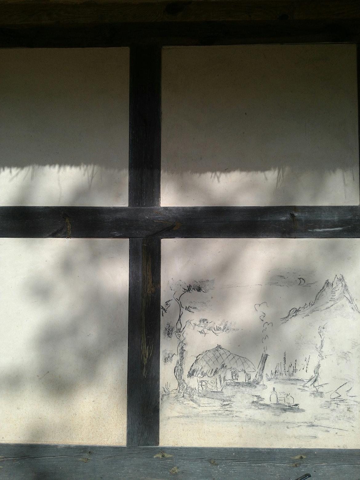 건물 벽에 누군가 월출산과 원림을 그려놓았다.                                       화단 가득한 모란과 작약꽃