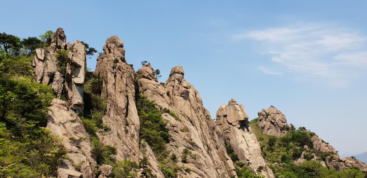 바람재에서 천황봉까지는 바위들의 파노라마다. 봉우리마다 우뚝 선 기암괴석들을 보느라 눈도 마음도 즐겁다. 장군바위(일명 큰바위얼굴), 귀뜰바위, 돼지바위, 칼바위, 남근바위 등등, 사람과 동물, 사물의 이름을 딴 이름도 재미있다.