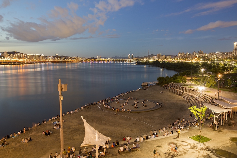 반포한강공원에서 즐거움을 누리는 사람들의 모습은 곳곳에서 포착된다. 잔디밭이나 나무그늘아래 돗자리를 편 채 둘러앉아 휴식을 취하는 이들도 많다. 자전거를 타고 한강변을 누비거나 보드를 타는 젊은이들도 보인다. 서울에 살며 좋은 것 중 하나는 바로 한강이 가까이 있다는 것이 아닐까. 가끔 가볍게 산책하며 바람도 쐬고, 머리도 식히며 재충전을 할 수 있는 곳, 한강이 있어 정말로 행복하다.