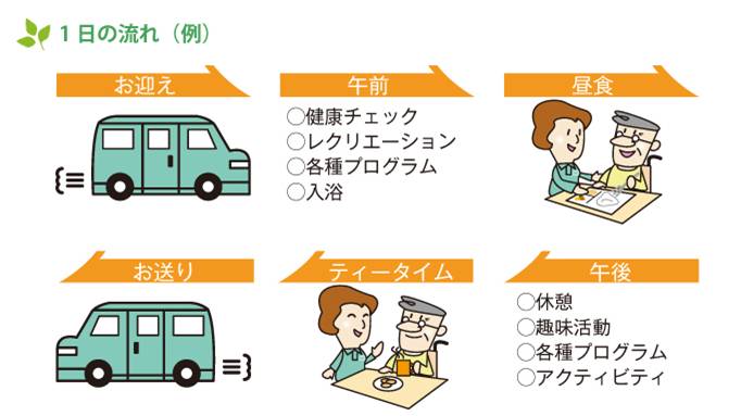 데이서비스의 근무시간은 아침8시반부터 오후4시반~5시반까지, 주휴2일, 월수입은17~18만엔, 우리돈으로 200만원이 채 되지 않는다. 데이서비스의 하루는 바쁘다. 아침8시반, 차로 이용고객을 2회에 걸쳐 모셔오는일이 10시반에 끝난다. 이용 고객 전원이 모이면 레크리에이션 담당이 재활 체조지도를 시작한다. 이사이에 목욕담당이 차례로 목욕탕에 데려간다. 12시가 되면 배식을 하고 식사를 돕는다. 3시반까지 다시 레크리에이션을 하고 또 2회로 나누어 이용고객을 차로 모셔다드린다. 4시반에는 이용고객전원이 귀가하므로 그 후 시설의 청소를 하고나면 하루가 끝난다. 지금은 가장 인기있는 요양보조사가 되었지만, 그가 실제로 요양보조사의 일을 시작하고 최초로 부닥친 벽이 화장실 청소였다.