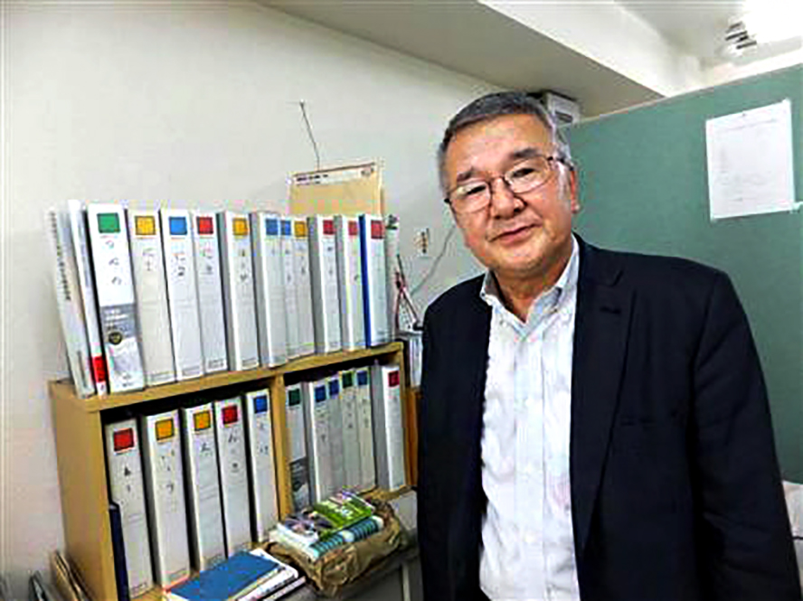 <옆에 있는 1만명분의 명함첩이 자산이라는 미카미 씨>