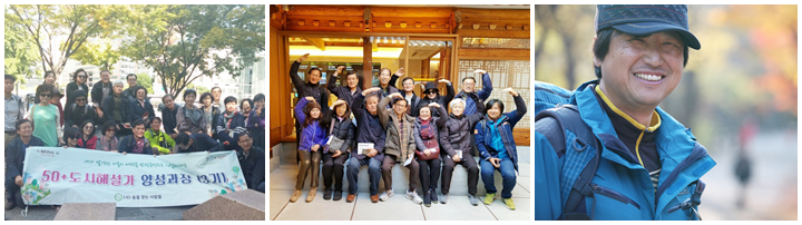 강세훈 현재 서울시50플러스 캠퍼스에서 ‘도시해설가양성과정’을 진행하고 있는데 내년에도 이어서 진행했으면 합니다. 수강한 3기분들이 좋다고 주변에 소개해주는 분들도 계시고, 내년에 제가 수업을 못하면 민원을 넣겠다는 농담을 하시는 분들도 계시니 감사합니다. 여행 분야의 다른 과정을 추가로 개설할 계획도 가지고 있습니다. 여행작가과정과 아웃도어활동가과정 등 여행의 범위를 확대한 아웃도어라이프에 필요한 활동전문가 양성 과정을 만들고 싶습니다. 50+세대에게 꼭 필요한 교육이라고 자신합니다. 또한, 협업을 통해 마을 봉사와 도시재생 분야로도 일을 확대할 계획이고, 개인적으로는 50+세대를 위한 전문여행사를 세우는 것이 최종 목표입니다. 숲을찾는사람들이 50+세대와 함께 가는 여정을 기대해 주십시오. 감사합니다.