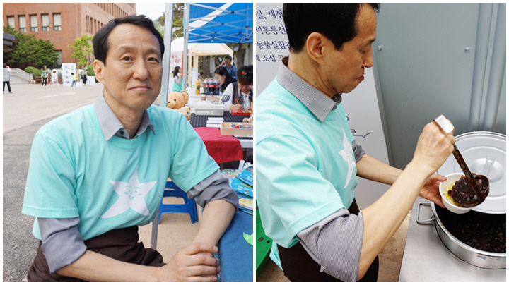서부캠퍼스 중년남성요리교실 수강생들과 2017 모더레이터 선생님들은 행사 전날부터 모여 자장면 재료를 준비하고 행사 당일 쉴새없이 모여드는 아이들과 시민들을 위해 한 그릇 한 그릇 정성껏 음식을 대접했습니다.