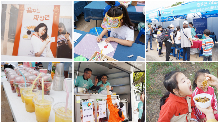 특히 50+ 무지커쉐프 커뮤니티는 어린이에게 인기 많은 음식을 판매하는 사이사이 수준 높은 성악 공연을 펼쳐 많은 이들의 박수를 받았습니다. 보이지 않는 곳에서 물심양면 힘을 보탠 서울시50플러스 서부캠퍼스와 서울혁신파크 입주 기업 (주)윔플(대표 박선하)과 한평의꿈(대표 김민선)의 도움도 있었기에 ‘꿈꾸는 자장면’ 프로젝트를 성공적!으로 진행할 수 있었습니다.