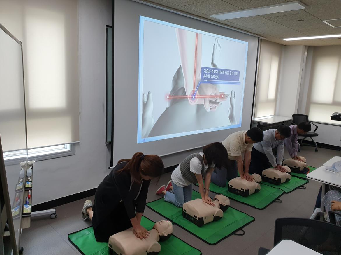 ▲응급상황을 대비해 심폐소생술 교육도 진지하게                              ▲여행객을 배려하는 해설자의 자세도 중요한 덕목