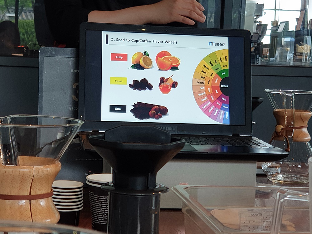 여러 산지의 커피 맛을 감별 하는 등 레벨 별 클래스가 있어서 저는 초보 과정인 ‘브루잉클래스’에 참석을 해봤어요.