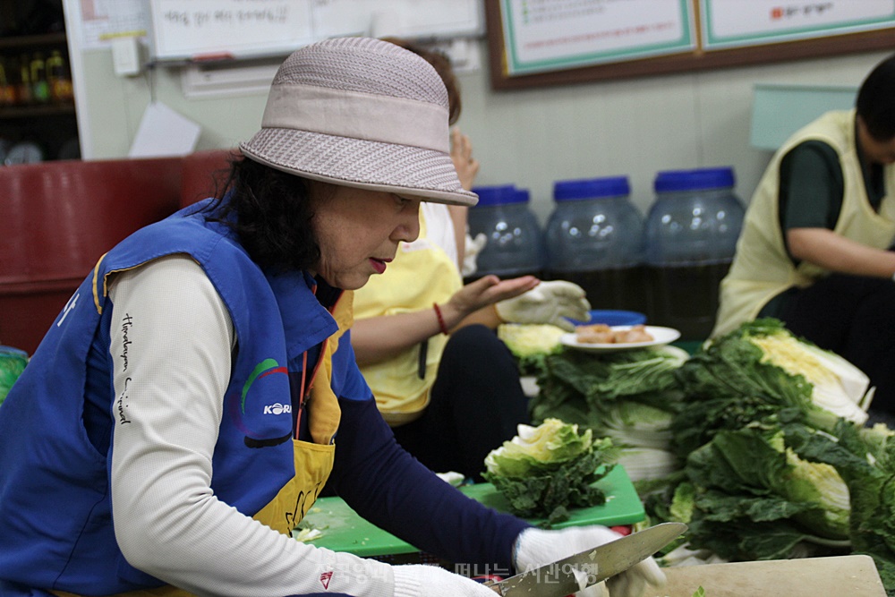 “김치를 담그고 반찬을 만들어 나눔을 하는 봉사자들은 한결같이 마음이 즐겁고 좋다.” 라고 표현을 하고