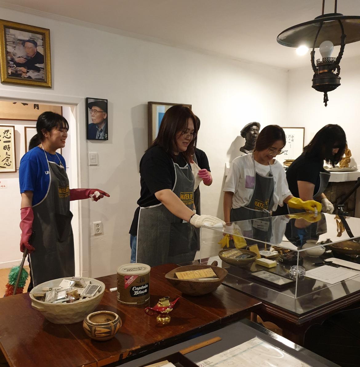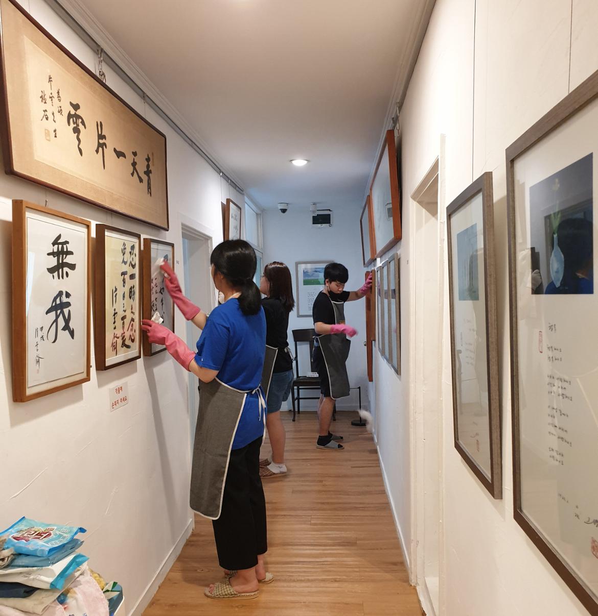관장님의 특강과 본격적인 문학관의 곳곳을 탐방해야 하는 빠듯한 일정 때문에 문학관 관계자로부터 간단한 청소 요령을 듣자마자 서둘러 일을 시작해야 했다. 우리 일행은 조별로 일감을 분담하여 용도에 맞는 청소도구와 비품, 마스크, 장갑 등을 분배받았다.