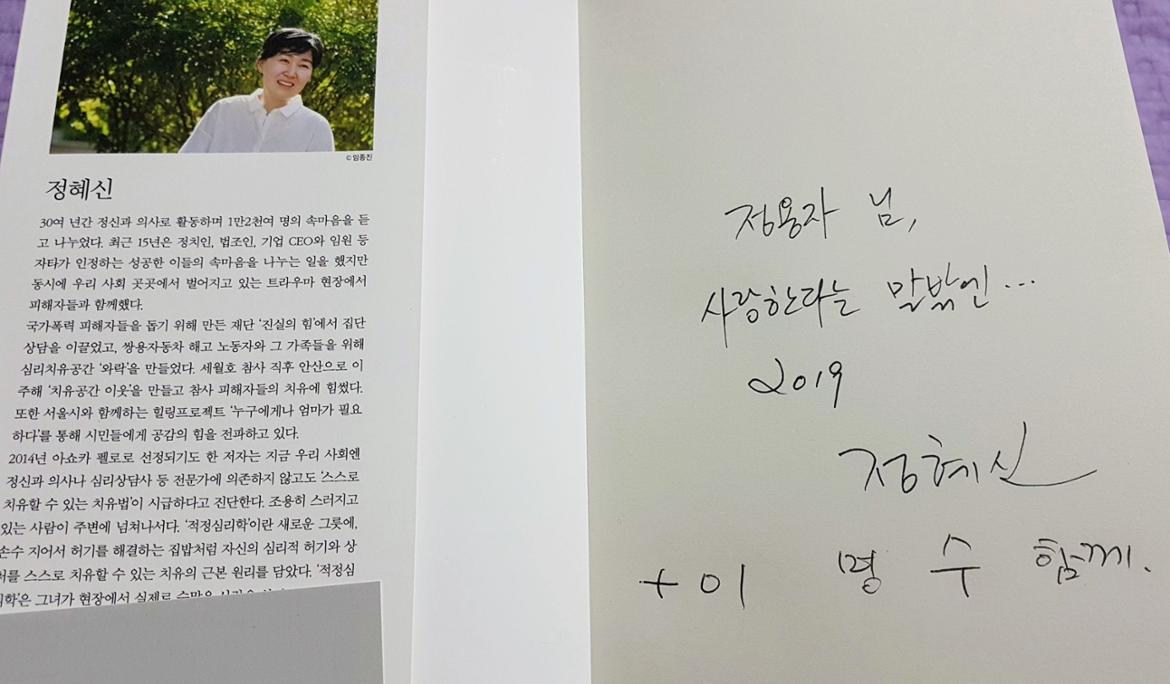 며칠 전 ‘더함플러스 협동조합’이 주관하고 서울시50플러스 서부캠퍼스에서 후원한 정혜신, 이명수 부부의 특강이 워크숍 형태로 있었습니다. 서부캠퍼스 4층 강당이 가득 찰 정도로 인기가 있었는데요. 다행히 여유 있게 도착해서 부부의 시선이 닿는 맨 앞자리에 앉을 수 있었습니다.