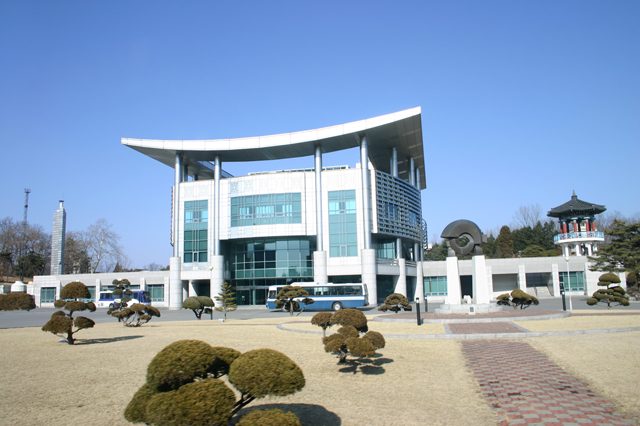 JSA 안보견학관 입구. 전시실과 교육실 휴게 공간 등 시설이 갖추어져 있다.