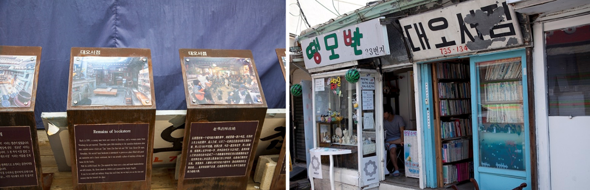 북카페로 변한 대오서점 앞에 대오서점 자리였다는 표시                                       전에 찍어둔 대오서점 사진