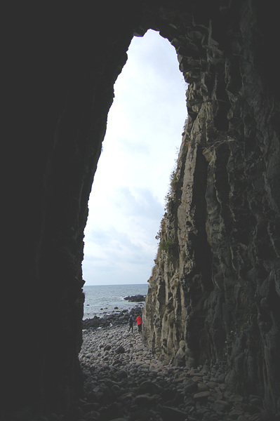 올레길을 걷다 보면 흔히 만나게 되는 감귤 과수원. 제주도의 남쪽에서 이런 풍경을 흔히 볼 수 있다                        중문에서 모슬포 가는 올레길에 있는 해식동굴.