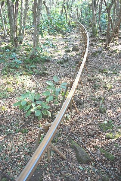 한라산 등반로. 잘 정비되어 있어서 전문 등산장비를 갖추지 않아도 진달래밭까지는 어렵지 않게 오를 수 있다        한라산 등반로 옆으로 설치되어 있는 모노레일. 등반로 정비나 비상 상황에 이용할 수 있도록 설치되었다