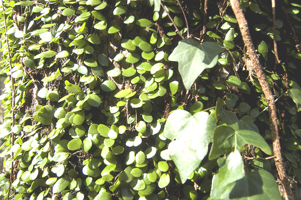 비자나무와 함께 살고 있는 식물들(기생식물인 듯)이 햇빛에 반짝이는 모습이 아름답다