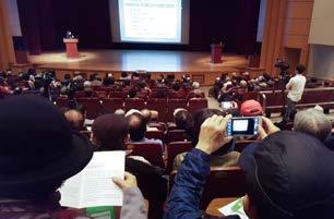 ▲치매 예방 건강 강연회에서 내용을 놓칠까 한 중년 참석자가 카메라로 스크린을 찍고 있다.