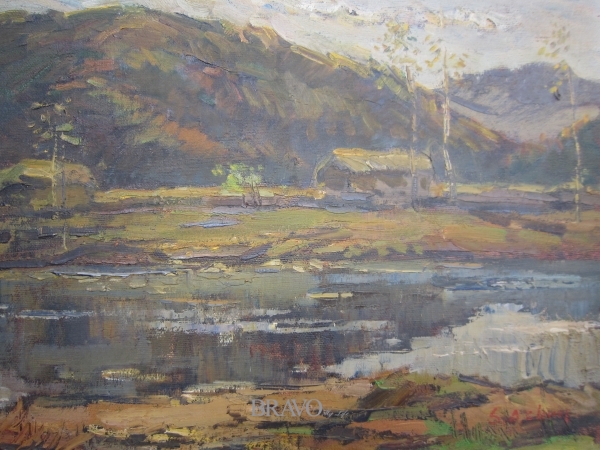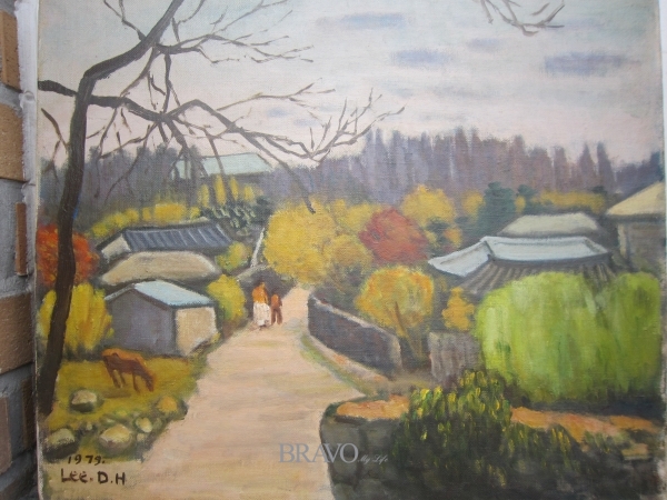 이 그림 <농가(農家)의 만추(晩秋)>는 대구의 동원화랑에서 구입한 것이다. 이 작가의 풍경화 두 점이 있었는데, 돈이 모자라 이 그림만 수집하고 머뭇거리는 사이 다른 한 점은 유명한 도예가가 얼른 가져가버려, 오랫동안 가슴앓이를 해야 했다. 아직도 그 그림 <갑사(甲寺)의 설경(雪景)>이 눈에 어린다. 한순간의 기회를 놓치면 다시는 그 작품을 수집할 기회가 닿지 않는다.